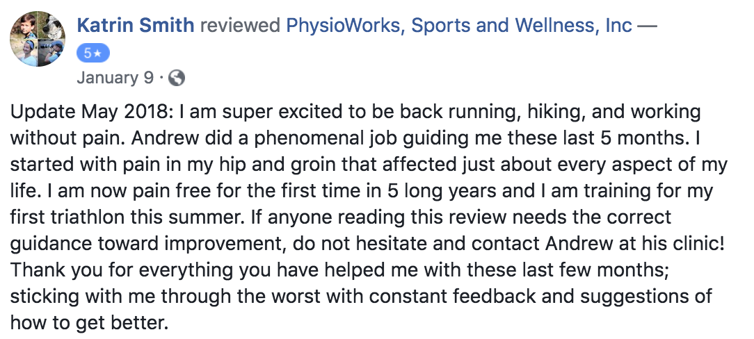 "I have been working as a PT for 15+ years and have worked with a wide variety of patients across two continents. I enjoy working with patients who have been failed by our healthcare system and are left with problems that just aren't improving. From runners with nagging injuries, to parents who are finding it hard to care for their kids. I promise to listen carefully, to understand your values, and care for you as an individual."